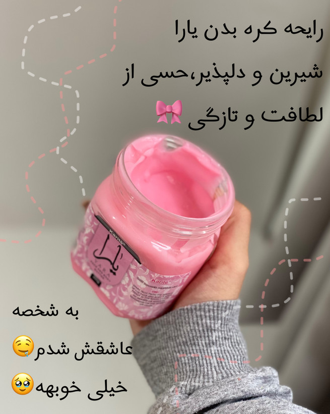 - موارد استفاده: آبرسانی پوست، رفع خشکی و زبری، مناسب بعد از حمام